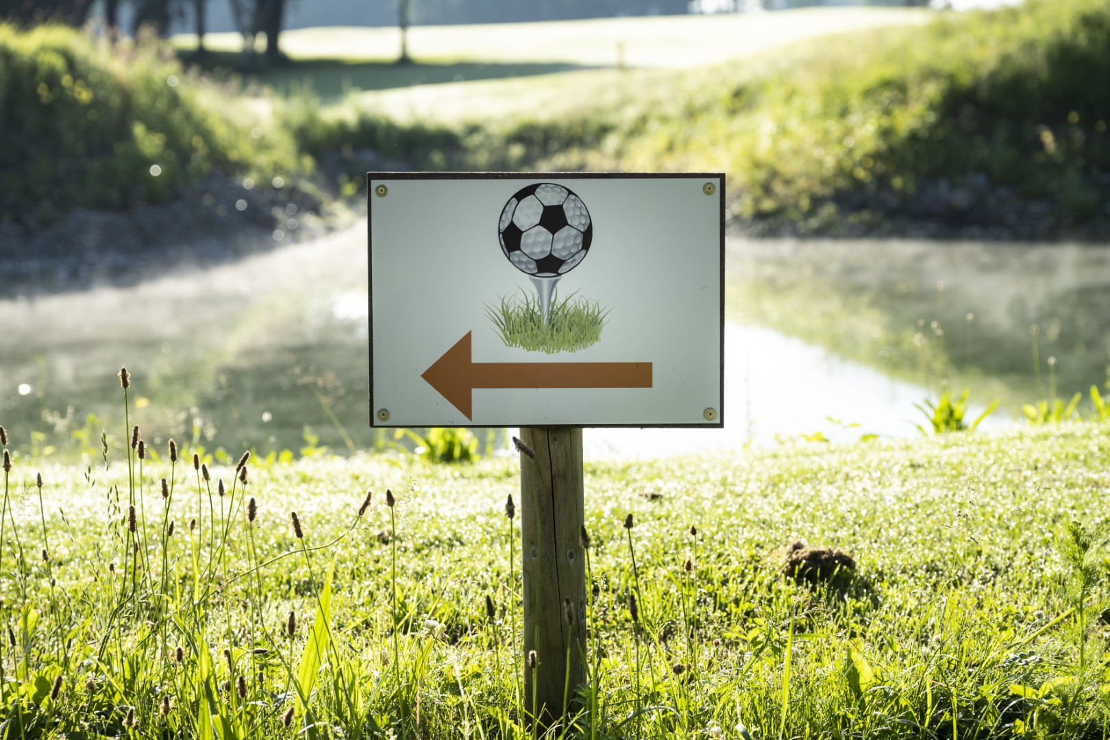 Bitte beachten Sie, dass die Fußballgolfanlage nicht mit Stollenschuhen bespielt werden darf.