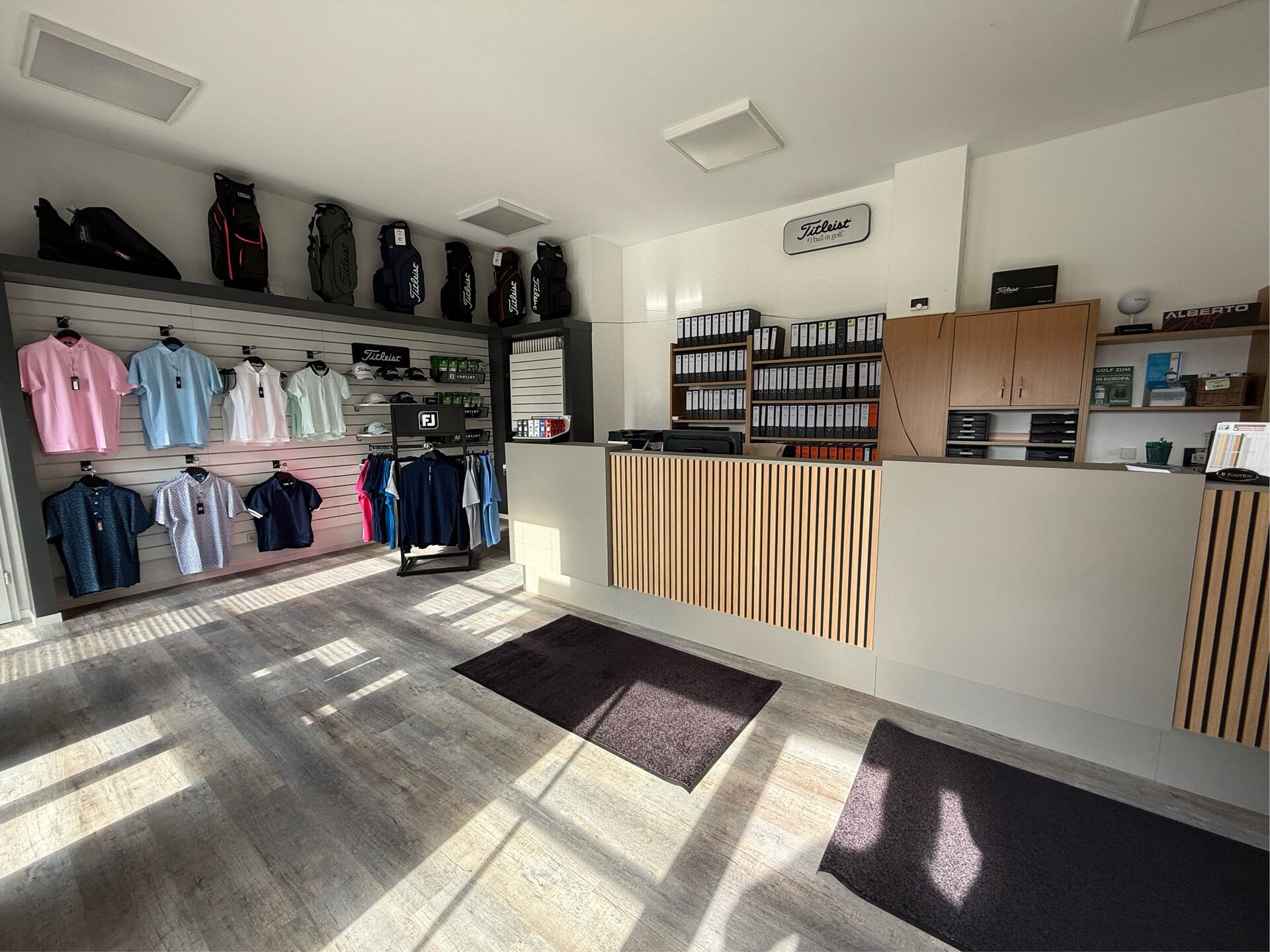In unserem neu gestalteten Proshop, finden Sie Alles und ein bisschen mehr für Ihre Golfrunde. Es erwartet Sie ein umfangreiches Sortiment ausgewählter Hersteller der Marken Titleist, Footjoy, Ping, Wilson und ALBERTO GOLF.